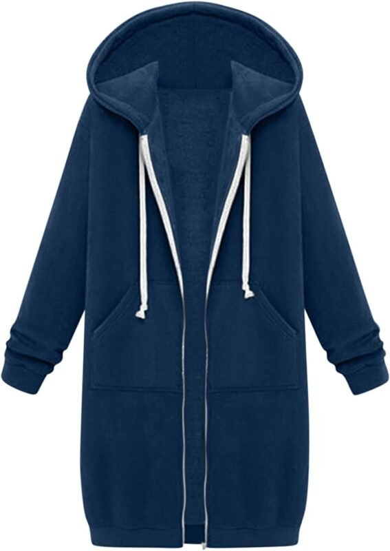 Zip Up Hoodie Women Knee Length 2024 Long Sleeve Oversized Sweatshirts...