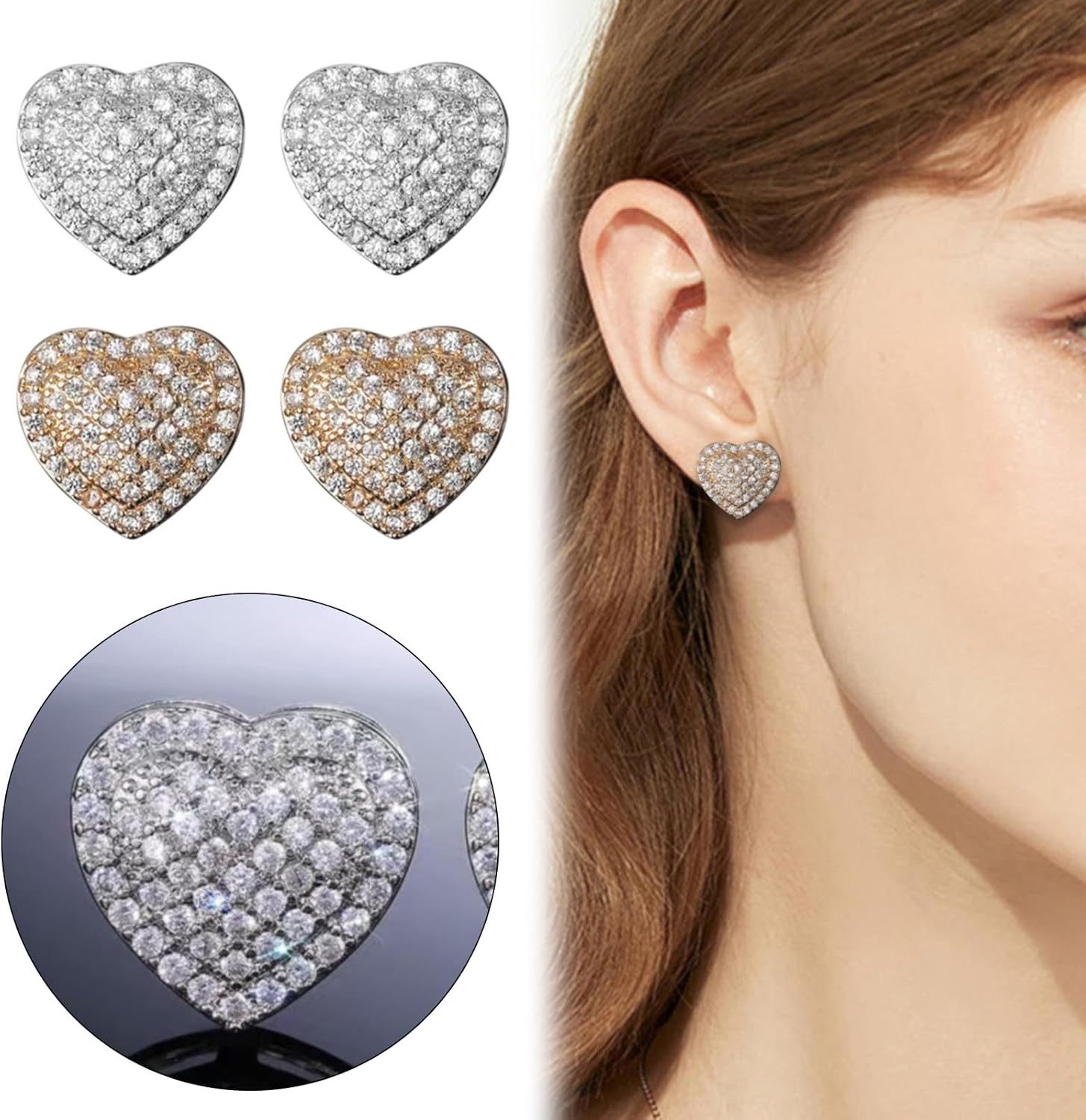 Diamond Stud Earrings for Women,Cute Heart Hypoallergenic Stud Earrings with Cubic Zirconia Trendy Birthday Gifts