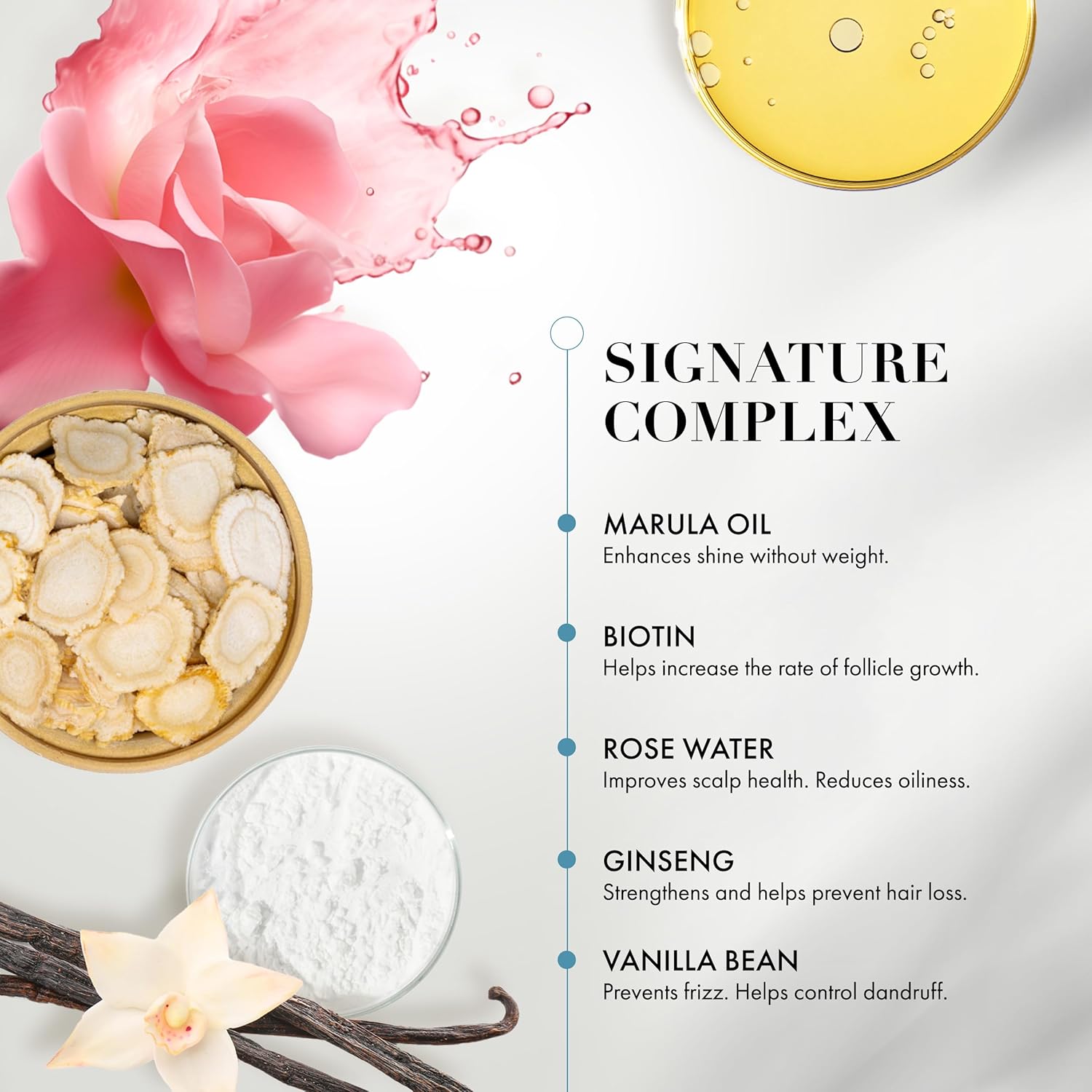 Strengthens & Adds Bounce – Biotin supports stronger, fuller-looking hair while ginseng helps improve elasticity and liveliness.