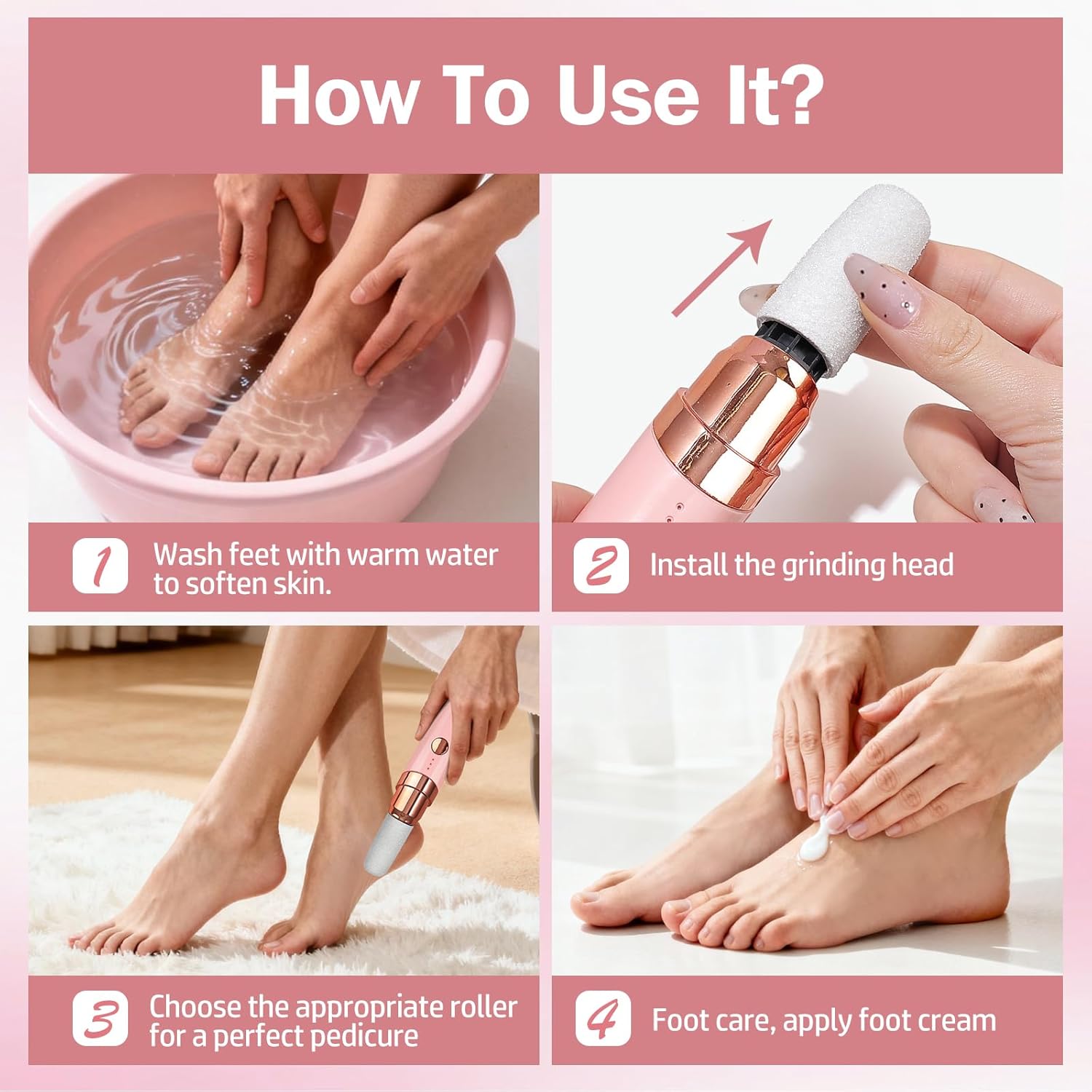 Perfect Foot Care: An all-in-one solution for professional foot care. This electric foot callus remover painlessly and safely smooths away calluses and cracked skin, delivering a spa-like pedicure experience that reveals noticeably softer feet without ever leaving home.