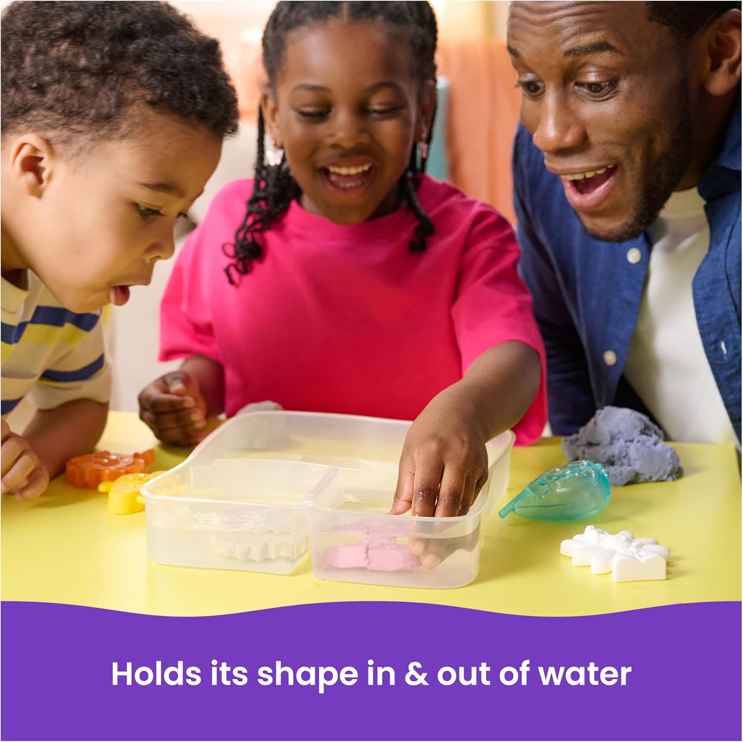 Weather-themed fun: Experience exciting water play & reveals with the Water Play Sandbox, featuring 2 colors (12oz) Kinetic Sand Splash sand, play tray, 4 tools & molds to inspire creativity