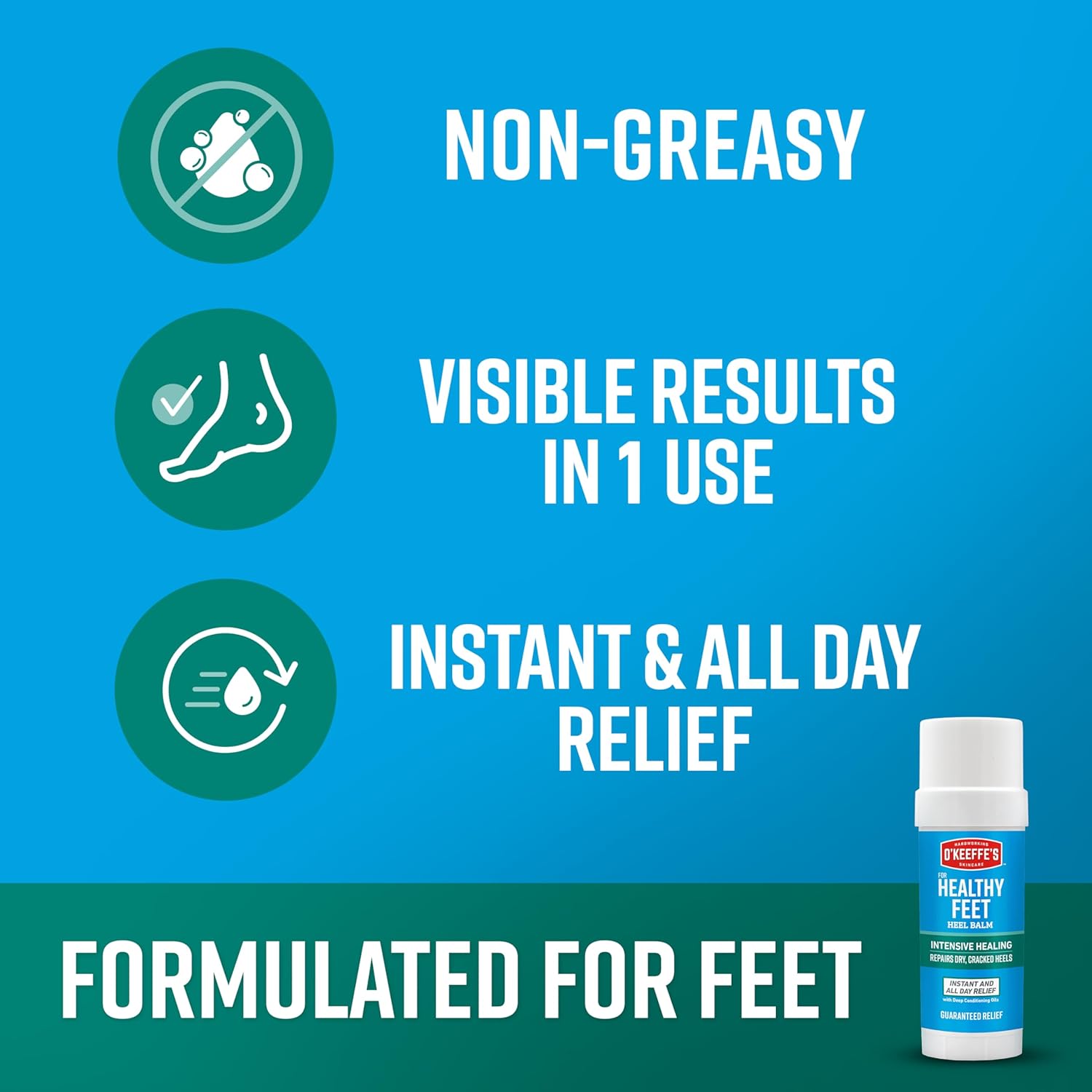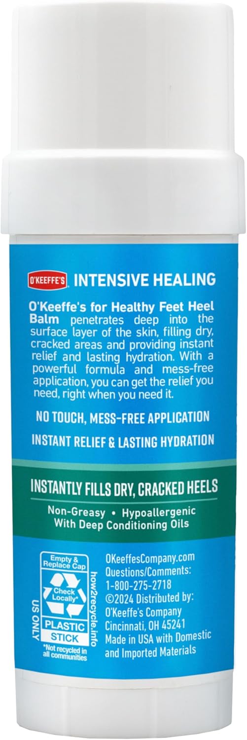 O’Keeffe’s for Healthy Feet Intensive Healing Balm penetrates deep into the surface layer of the skin, filling dry, cracked areas and providing instant relief and lasting hydration. O’Keeffe’s for Healthy Feet heals, relieves, and repairs extremely dry, cracked feet. Guaranteed relief or your money back. The #1 Foot Cream Brand in America* offers dry cracked feet treatment, foot lotion for dry, cracked feet and now dry cracked heel treatment. For over 25 years, O’Keeffe’s hardworking skincare products have been providing guaranteed relief.