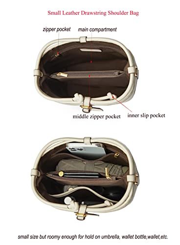 DORIS&JACKY Small Leather Bucket Hobo Purse for Women Designer Drawstring Crossbody Bag and Handbags