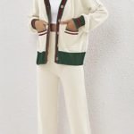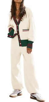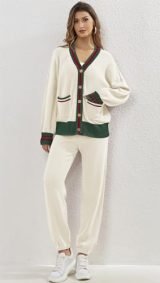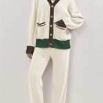 ETCYY NEW Women’s 2 Piece Outfit Lounge Set Trendy Cardigan Sweater Pants Sets V Neck Button Pocket Knit Matching Loungewear
