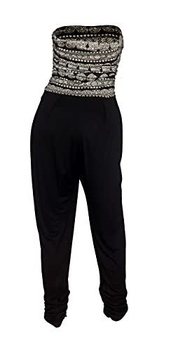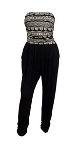 This plus Measurement jumpsuit includes a sleeveless strapless design. Elastic trim line. Abstract print bodice on contrasting cast black pants. Somewhat loose stretch have compatibility. Polyester mix cloth. To be had in 1XL=Measurement thirteen/14, 2XL=Measurement 15/sixteen, 3XL=Measurement 17/18.