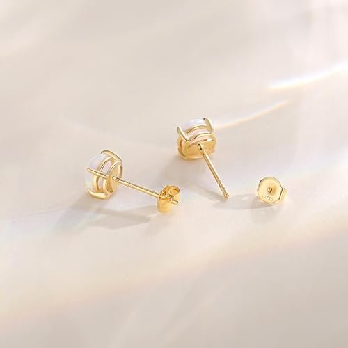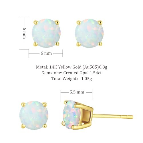 FANCIME 14k Solid Yellow Gold Natural Gemstone Stud Earrings Prong Cluster Birthstone Stud Earrings Fine Jewelry Gifts for Her Mom Women Wife,6mm