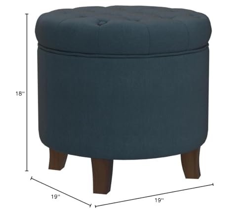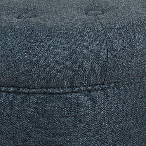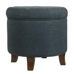 This elegant round storage ottoman features a lift-off lid with in all places button tufting for a classic design. Upholstered in a wealthy indigo blue fabric with a textured weave, it’s the very best functional accent piece for your home. Use our round ottoman to store extra pillows or blankets in your bedroom, hide toys or controllers in the circle of relatives room, or conceal accessories in your entryway. Our Boho Tufted Storage Ottoman is to be had in a range of velvets and richly colored woven fabrics with wood legs in complementary finishes. Matching HomePop items are also to be had in the same color and fabric. Easy to assemble and deal with.Easy to assemble and deal with.Please note that fabric and wood colors may appear relatively different as a result of variations in lighting or screen settings.