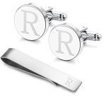 LOYALLOOK Stainless Steel Engraved Initial Cufflinks and Tie Clip Bar Set Alphabet Letter With Gift Box A-Z