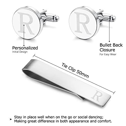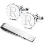 LOYALLOOK Stainless Steel Engraved Initial Cufflinks and Tie Clip Bar Set Alphabet Letter With Gift Box A-Z