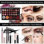 Makeup Kit including Matte Metallic Pigments Eyeshadow Palette, Liquid Shimmer Eye shadow, Liquid Glitter Eye liner, Lipgloss, Concealer, Pressed powder, Concealer stick, Makeup brush, Makeup Primer, Eye brow pen, Lip Balm, Lipstick Set, Eyebrow Pen, Make Up Primer Base, Makeup Sponge, Mascara, Black Eyeliner Pen and Travel Bag