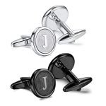 ORAZIO Cufflinks For Men Engraved Initials Cufflinks Silver Black Set Stainless Steel Tuxedo Shirt Cuff Links Letter Alphabet A-Z Gift With Box For Wedding,Dad,Groom,Groommen,Husband