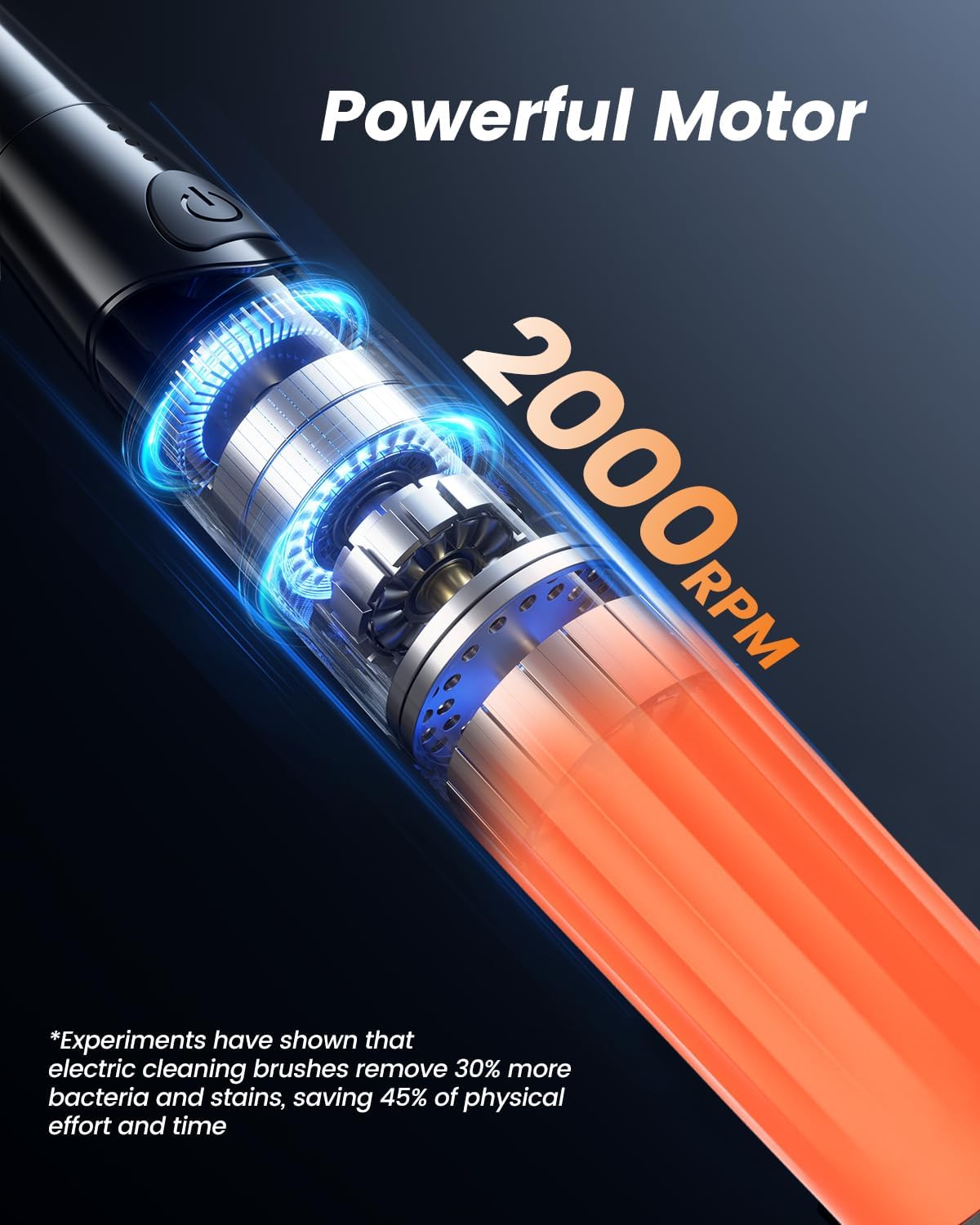 【 ⚡RELENTLESS POWER】Ditch weak back-and-forth scrubbing! Our upgraded spinning tech blasts through dried spills, grease, and grime at 2000 RPM – turning stubborn messes to dust.