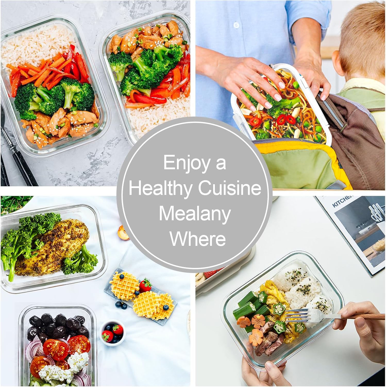 GLASS MATERIAL EXCELLENCE IN QUALITY: Glass meal prep containers are made of superior quality borosilicate glass, for oven, microwave, dishwasher and freezer. Stronger than ordinary plastic food storage containers, food can be stored in glass containers directly after cooking. The containers are versatile to meet your everyday food storage needs, suitable for use in prep meals at home or whatever you need for the occasion.