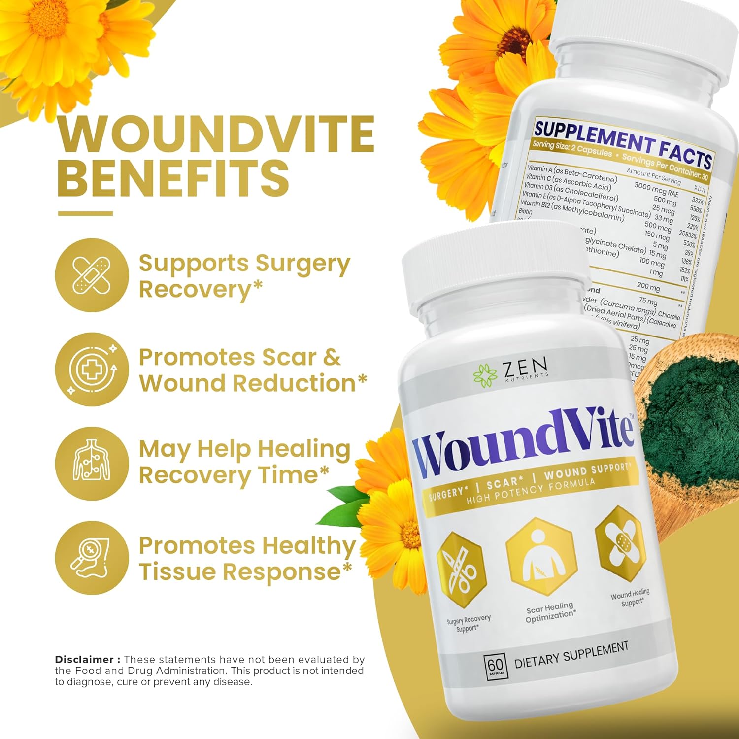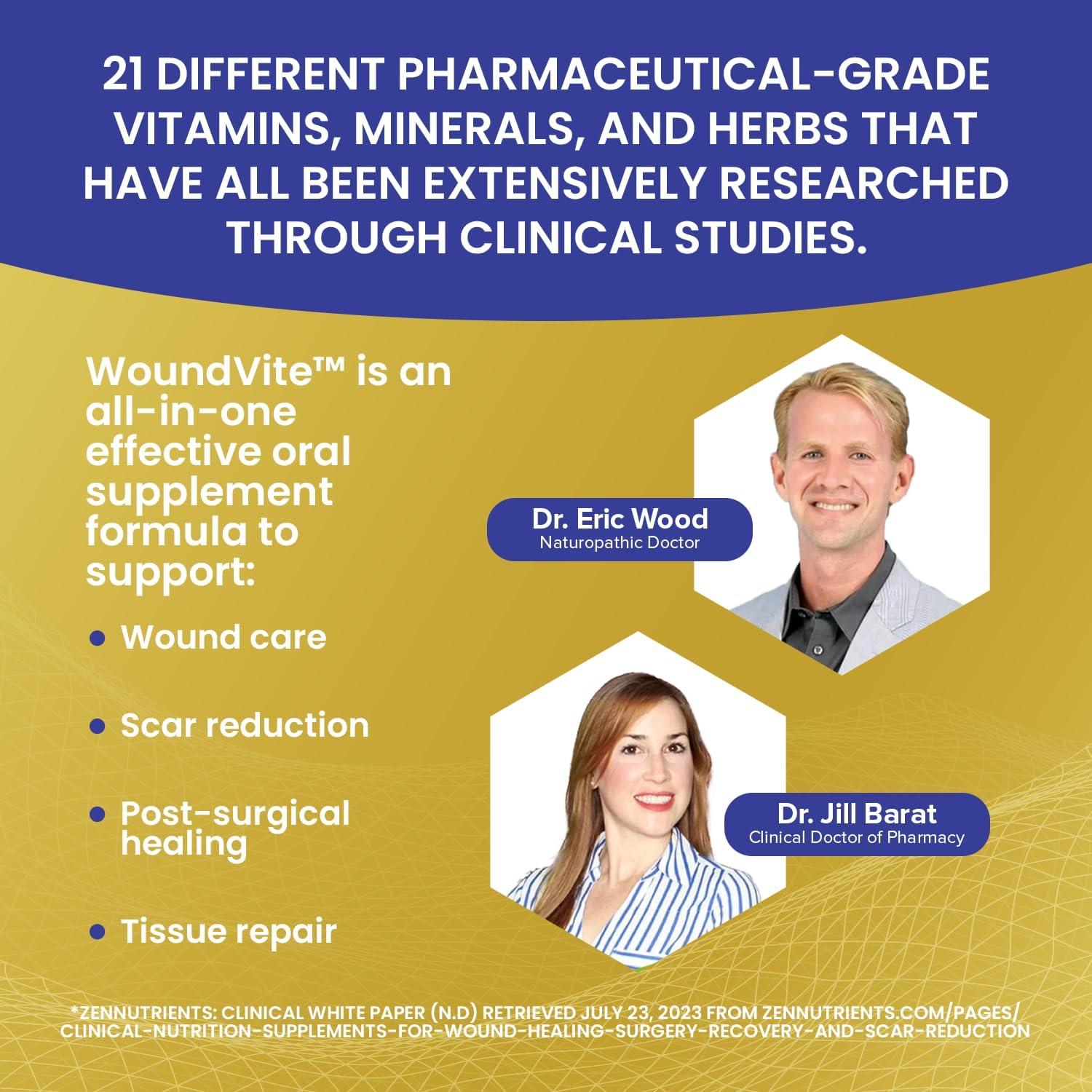 Your Go-To Healing Support – Highly rated and best in category! Powered by 21 targeted ingredients with high potency vitamins, minerals, and herbs. These work synergistically to support a speedy recovery for wounds, scars, bed sores, tissue injuries, post-surgical healing and more.